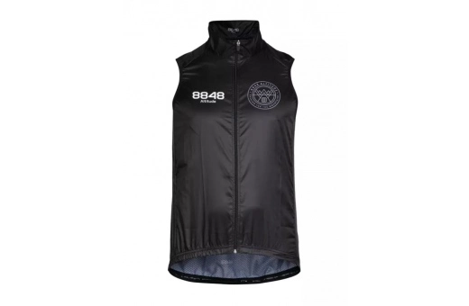Materialet på framsidan och övre delen av ryggen är vindtätt och även vattenavstötande och kan stå emot någon lättare skur. För högeffektiv ventilation är nedre ryggpartiet konstruerat i en stretchig mesh som släpper ut fukt och överskottsvärme. Västens passform är cykelanpassat tight och smiter åt vid skuldrorna, den längre baksidan har elastisk nederkant med silikongrepp, en designlösning som ser till att västen alltid sitter perfekt. Dragkedjan framtill har auto-lock, dvs att den kan låsas i valfri position.