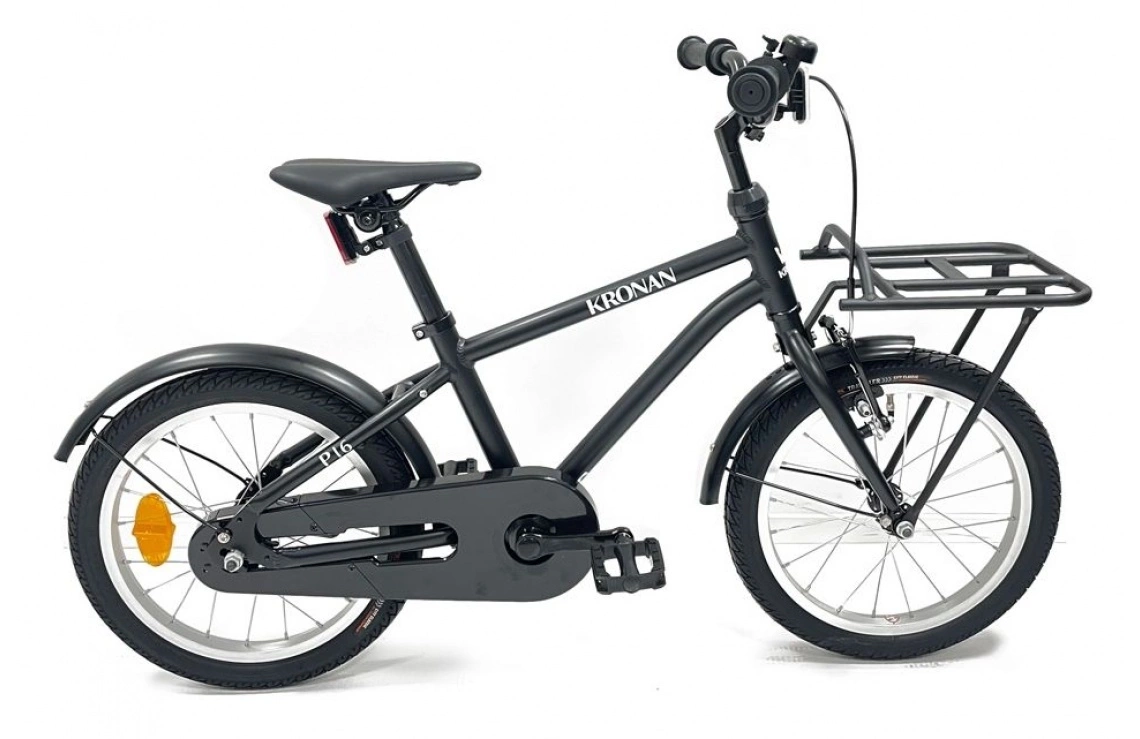 Letar du efter en robust liten juniorcykel med modern design och pålitlig prestanda så är den eleganta Kronan P16 ett riktigt smart alternativ. En okomplicerat modell med generöst lastutrymme där både helheten och varje liten detalj andas kvalitet och smart funktionalitet. Vid sidan av ett tufft yttre så prioriteras såklart säkerheten och modellen har pålitliga bromsar och är såklart utrustad med både reflexer och ringklocka som ser till att cyklisten både hörs och syns. Det här är en kvalitativ liten barncykel som fungerar lika bra för avslappnade turer till och från lekparken som för lite mera äventyrlig cykling med resten av familjen. En bekväm modell med klassisk färgsättning, raka linjer och en bekväm körställning som skapar en tydlig vy över omgivningen, vilket kan vara praktiskt när medtrafikanterna utgörs av en massa halvgalna fartdårar. Ett gediget väderskydd, beprövade komponenter och en snygg svart lack som står emot det mesta gör att den både tål att användas och ärvas vidare bland släkt eller vänner.
