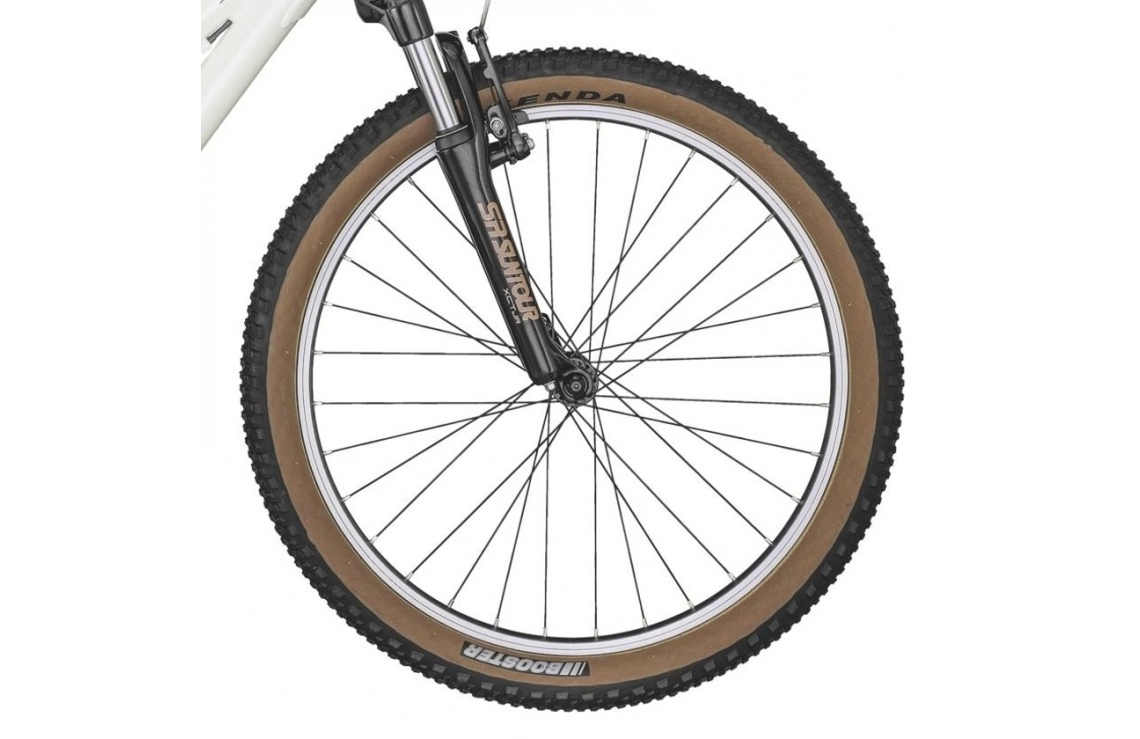 Själva stommen utgörs av en pålitlig aluminiumram (6061) med en sportig geometri som är speciellt anpassad för att att vara lätthanterlig och samtidigt ge bra uppsikt över omgivningen. Framtill sitter en dämpad framgaffel från Suntour (XCT-JR) med 50 mm slaglängd som dramatiskt ökar komforten, helt perfekt när underlaget varierar.
