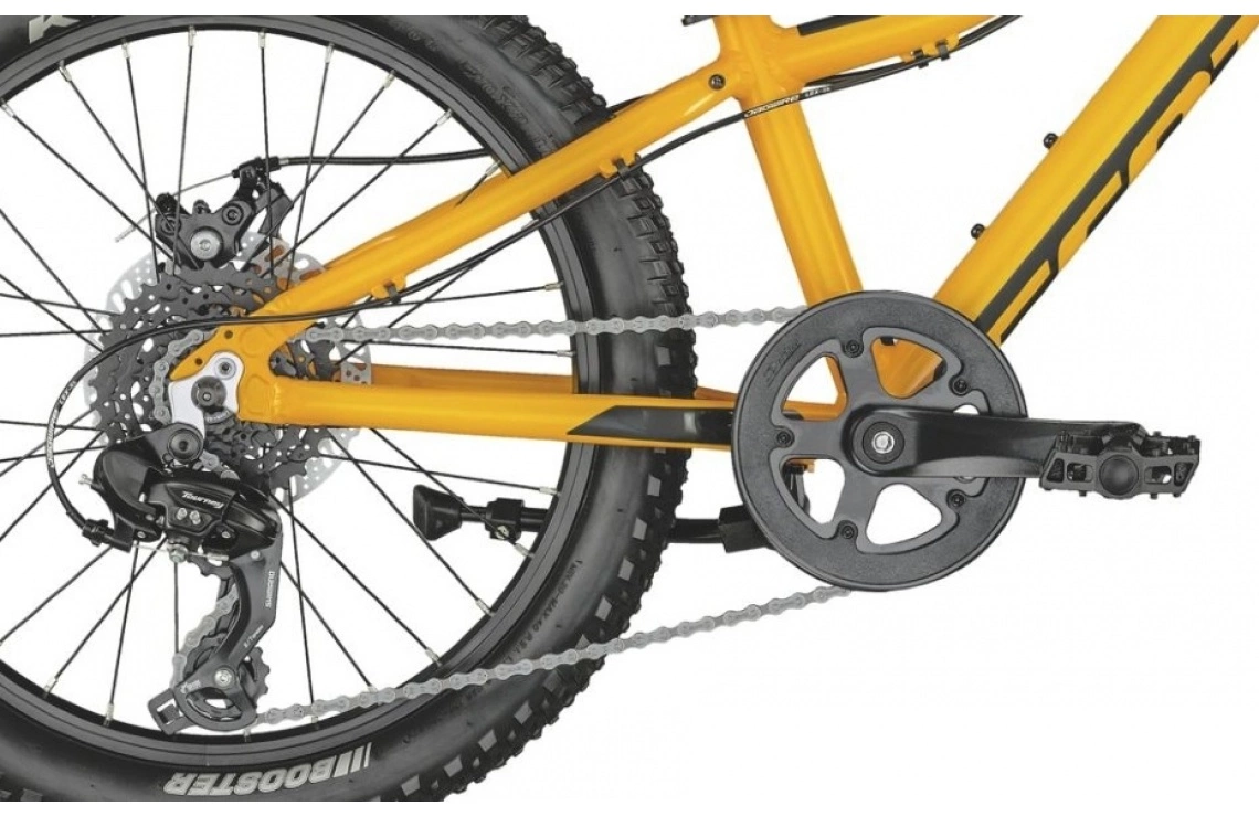 Med robusta Scott Scale 20 Rigid flyger man fram i oavsett underlag tack vare kombinationen av ett par kvalitetsdäck med 2,4 bredd och 7 växlar är det inga problem att ligga strax bakom (eller varför inte framför?) föräldrar ute i skogen – och givetvis kommer astronauten på den här raketen garanterat vara först till mars… eller förlåt vi menar såklart plugget. Modellen har dessutom både stöd och ett praktiskt kedjeskydd redan från start, samt genomgående finare komponenter än vad de flesta mindre cyklister är vana vid, och det vittnar ju om att den här cykeln är skapad för juniorer som verkligen älskar att cykla fort!