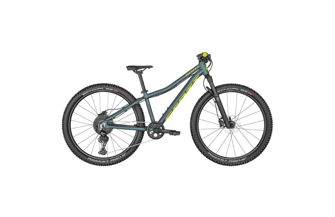 Precis som sina lite större syskon är även det här en lätt mountainbike med en högkvalitativ aluminiumram (Alloy 6061) som fokuserar på effektiv framkomlighet, låg vikt och hög hastighet. Modellen är dessutom utrustad med en dämpad framgaffel från Manitou (Markhor 26) med 80 mm slaglängd, en ”KTK” Kids Tune, justerbar retur och lockout, vilket dramatiskt ökar användningsområdet och ger dig möjligheten att kunna åka nästan lika fort på stökiga skogsstigar som på hårda grusvägar. Dess vassa hydrauliska skivbromsar från Shimano (MT500) levererar överlägsen bromskraft och ett par greppsäkra kvalitetsdäck från Schwalbe (Rocket Ron) med 2,35″ bredd ser till att cyklisten kan ta sig fram i imponerande hastighet i spåren, ja detta är helt klart en hoj som klarar riktigt tuff cykling.