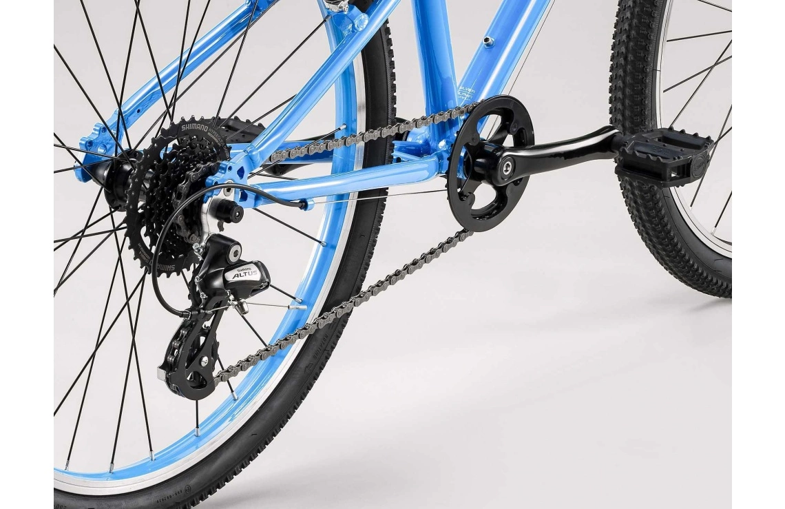 Den väger dessutom in under 9,6 kilo och den rullar obekymrat på ett par lite bredare allrounddäck (24×1,95″) som ger bra grepp de flesta typer av underlag och terräng. Lägg därtill ett par lätthanterliga v-bromsar samt reglage som är anpassade för lite mindre händer vilket ökar säkerheten. En tuff juniormodell med robust konstruktion, låg vikt och hög säkerhet som mer än gärna hänger med på nya äventyr och som dessutom gillar när det går undan.