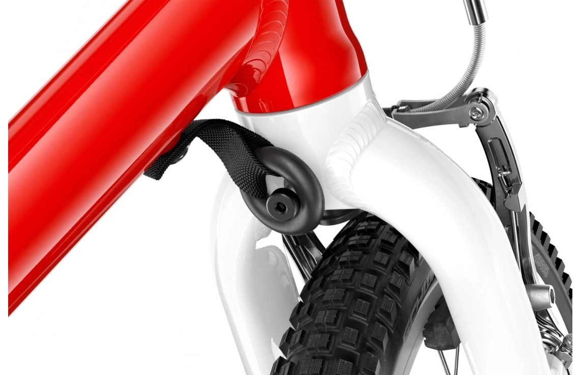 Allt rullar på ett stabilt hjulset med ultralätta aluminiumfälgar som i sin tur är försedda med ett par greppsäkra kvalitetsgummin (16-tummar) som levererar lågt rullmotstånd och pålitlig kurvtagning. När det väl blir dags att sakta ner farten så hanteras detta av ett par pålitliga v-bromsar som inte kräver mer bromskraft än vad lite mindre barn kan prestera. Bromsarna är smart färgkodade och inkluderar lätthanterliga reglage med smidig justering av räckvidden, som ser till att de passar även mindre händer. Vilket i praktiken ser till att du som förälder kan vara säker på att rätt bromsförmåga alltid finns på plats, oavsett vilka förhållande som råder för dagen. Även handtagen är ergonomiskt utformade och har en diameter som är fullt anpassad för små händer med lite kraftigare styrändar som ger extra skydd och minskar risken för att cyklisten ska behöva tappa greppet.