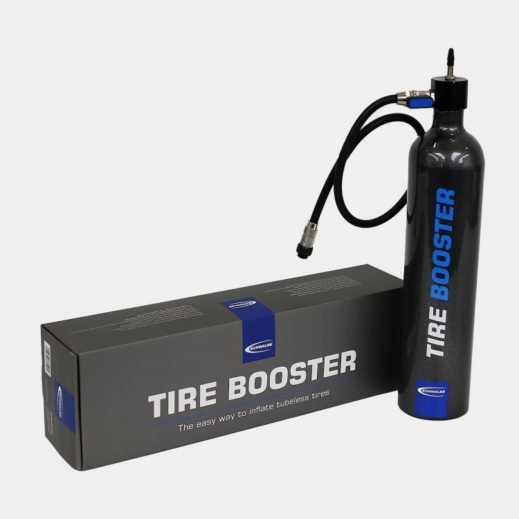 När man ska montera tubeless-däck krävs väldigt mycket luft, och man använder därför ofta en kompressor eller en superdyr golvpump. Med Schwalbe Tire Booster slipper du detta!
