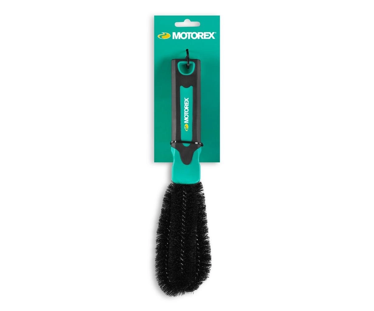 En hård rengöringsborste från Motorex som passar utmärkt för rengöring av både kassett och kedja