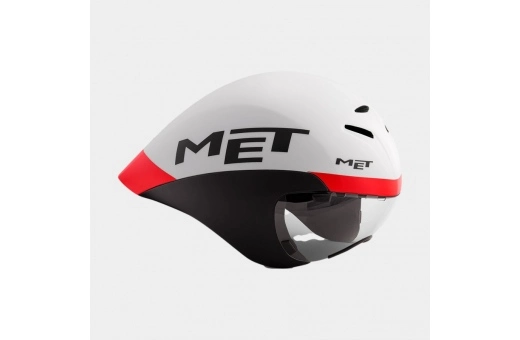 Högklassiga MET Drone är en tävlingshjälm för triathlon och tempolopp. Den har en helt unik design – ”Wide Body” – som är extremt aerodynamisk och minimera turbulens och luftmotstånd runt axlarna. Den sparar upp till 10 watt vid 50km/h vilket helt klart kan vara tillräckligt för att vinna loppet! Den har ett speciellt framtaget magnetiskt ögonskydd som både maximerar aerodynamiska egenskaper och skyddar mot insekter, regn och vind. Kraftfulla magneter håller skyddet säkert på plats och det imskyddsbehandlade materialet gör att du slipper dålig sikt.