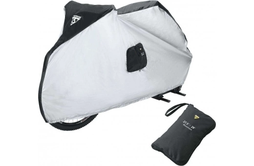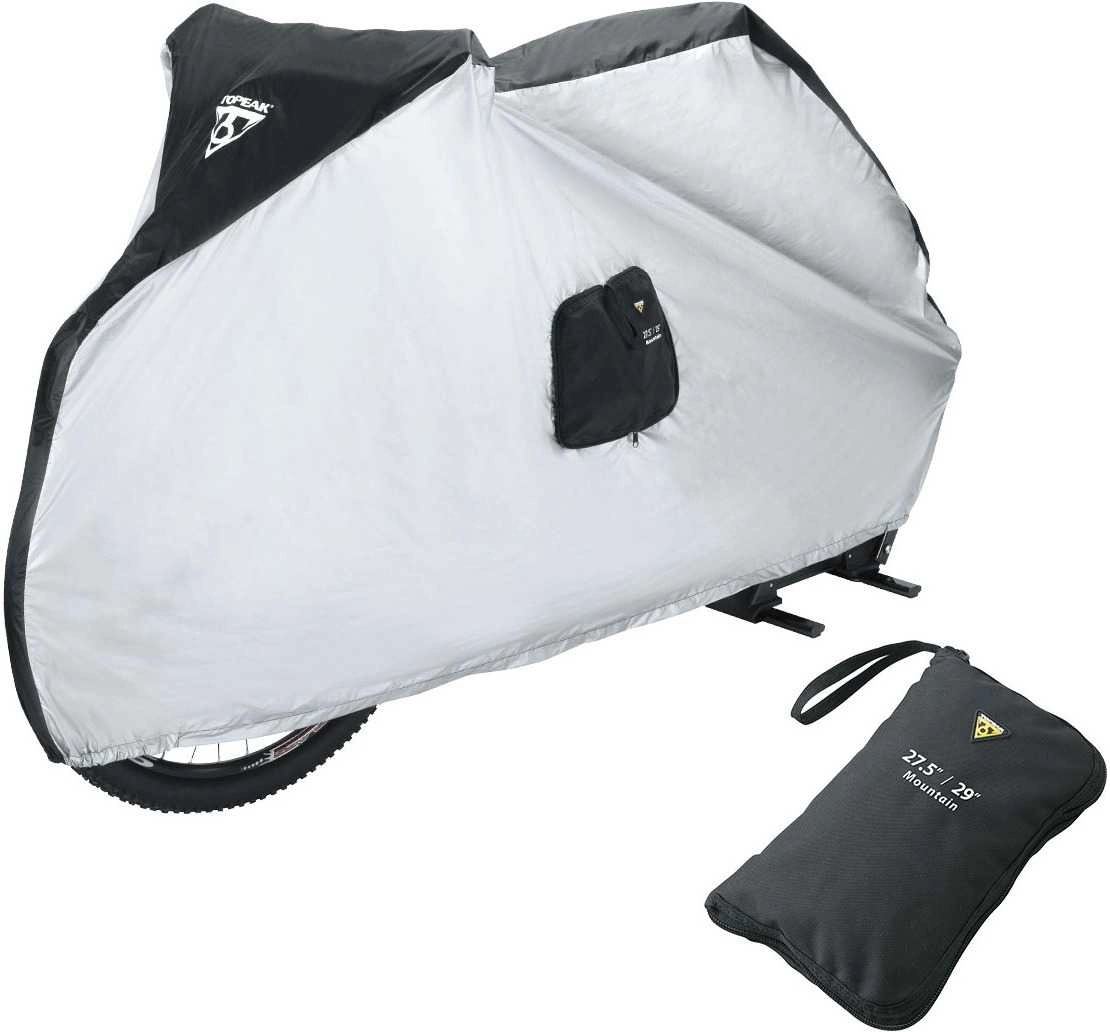 Cykelöverdraget Topeak Bike Cover i slitstark 190T Nylon skyddar din cykel från elementen är anpassat för MTB-cyklar med hjulstorlek 27.5″ / 29″. Kompakt storlek och kan enkelt vikas ihop när det inte används.