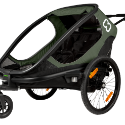 Den multifunktionella, användarvänliga, komfortabla och säkra Hamax Outback 2 kan användas som cykel, jogging, skid samt barnvagn. Den här versionen är utformad med utrymme två barn och dess slimmade aerodynamiska design med en utanpåliggande aluminiumram ger säkerhet av högsta klass. Vagnen är enkel att fälla ihop och tar föredömligt liten plats, däcken klickas enkelt av med ett endast ett enkelt handgrepp. Fjädringen kan justeras med en hand vilket ser till att vagnens styvhet kan anpassas efter det underlag och den packning du har för dagen, vilket ger barnet högsta möjliga komfort och dig som förälder en imponerande användarvänlig produkt.