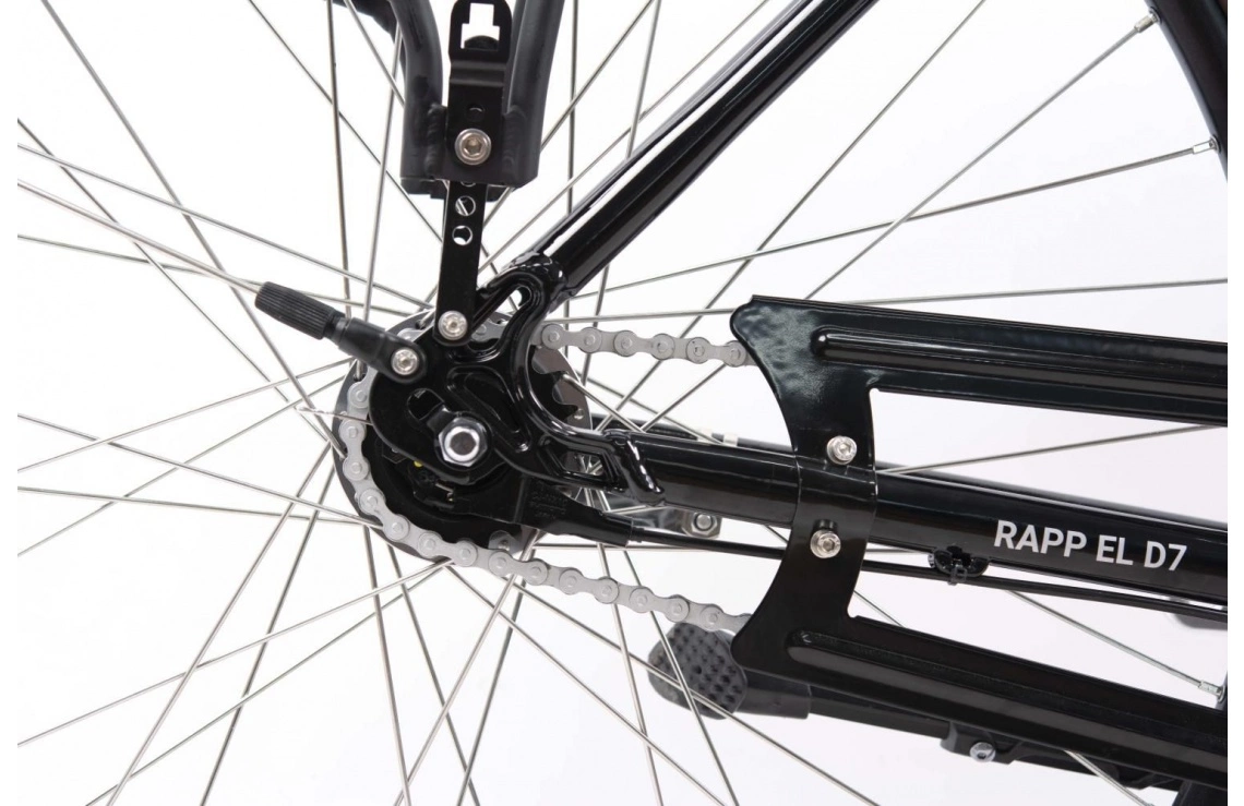 Tilltalas du av tidlös design och klassiska former i kombination med hjälpsam eldrift och ett behändigt lågt insteg så är Kronan Rapp D7 Dam troligen helt rätt cykel för dig. En robust elcykel utan en massa onödiga krusiduller som är lika omtyckt av killar som av tjejer – och av såväl gammal som ung. Den karakteristiska svängda ramformen har vid det här laget mognat färdigt och som tur är håller man fortfarande fast vid ett traditionellt elegant utseende. Ett smidigt transportmedel för vanliga vardagscyklister som smärtfritt vill kunna glida fram på en stilig klassiker och uppskattar pålitlig funktion, hög komfort, smidig framkomlighet och kvick manöverförmåga. En robust brukscykel med föredömligt lågt insteg som ser till att du dagligen kan tillryggalägga långa distanser utan att bli trött, andfådd eller sliten. Stora mängder last utgör inga större problem, framtill sitter en robust cykelkorg och i kombination med den stabila pakethållaren så klarar cykeln normala transportbehov med en packåsnas effektivitet.