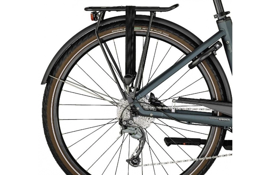 En imponerande välutrustad och mångsidig hybrid som ser till att du med gott samvete kan lämna bilen hemma och som mer än gärna hänger med på nya äventyr! Eftersom den trivs när det går undan har den effektiva hydrauliska skivbromsar vilket både sänker underhållsbehovet och ser till att du har tillgång till kraftfull bromsverkan året om, och dessutom oavsett om det är regnigt eller slaskigt. Helhetskänslan ligger nästan alltid i de små detaljerna, och den specialdesignad pakethållare, det slimmade kedjeskyddet, de snyggt integrerade låset och den läckert integrerade belysningen skapar verkligen modernt urbana vibbar och ger cykeln dess unika karaktär.