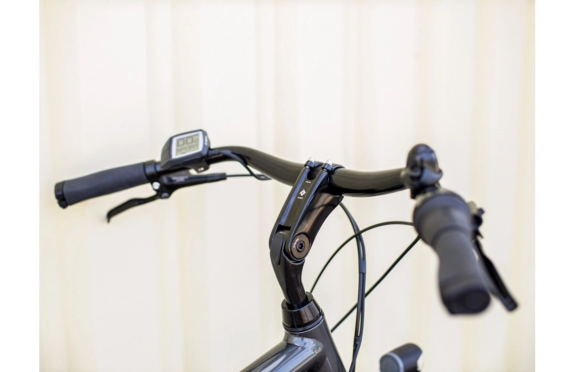 Stommen utgörs av en robust ram i aluminium (Alpha Smooth Aluminium) med elegant invändig kabeldragning, vilket både ger ett prydligare utseende och ökar skyddet mot både väta, slask och smuts. Ramen har extremt lågt insteg och en komfortabel geometri som sätter smidig manöverförmåga, god uppsikt och smidig framkomlighet i fokus. Med andra ord har den en bekvämt upprätt åkställning som verkligen låter dig njuta av omgivningen när du smärtfritt trampar fram i den egen takt.