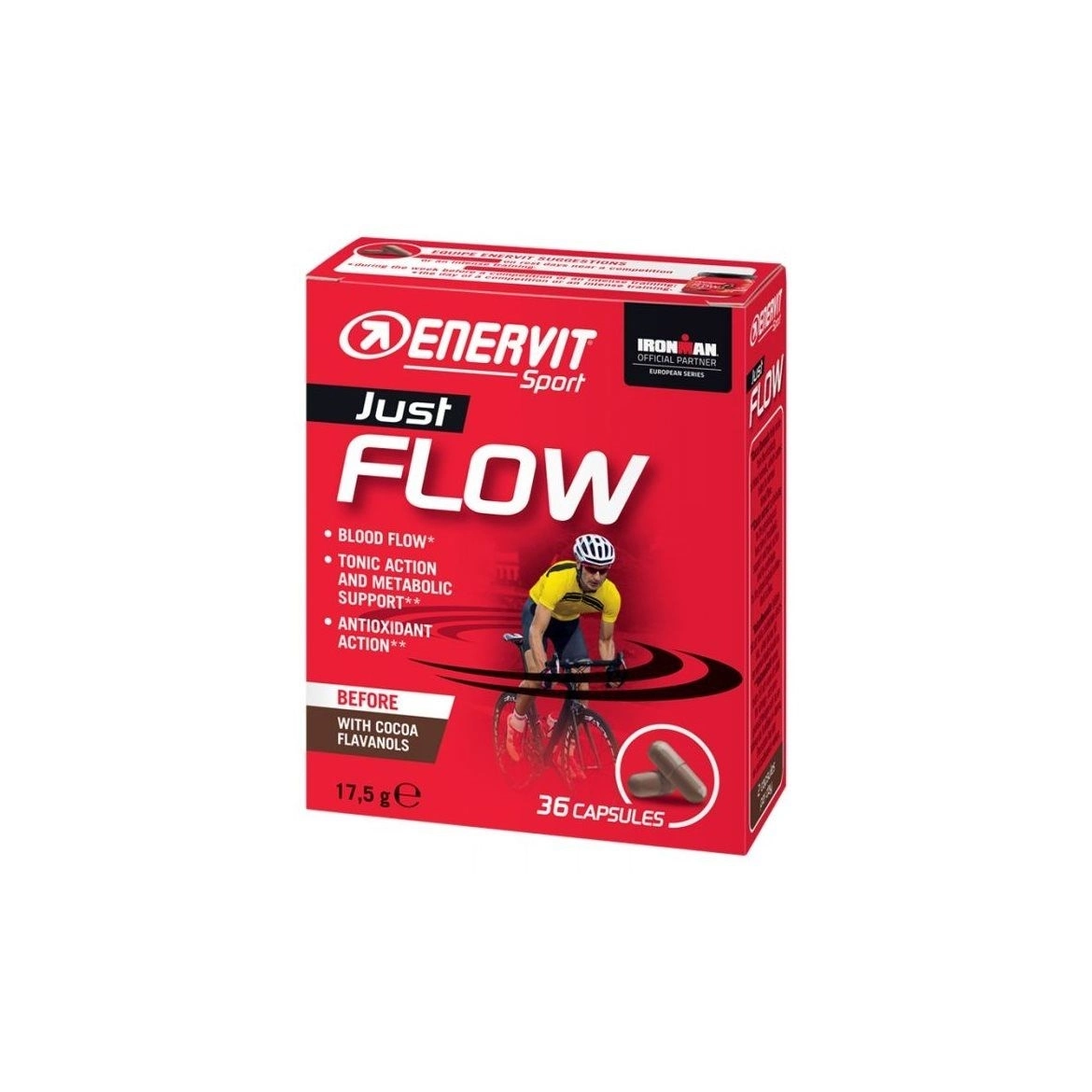 Enervit Sport Just Flow Cocoa är ett kosttillskott med vitaminer baserat på kakaoextrakt som finns i flavanol. Produkten underlättar en bra syretransport och bearbetning av mjölksyra