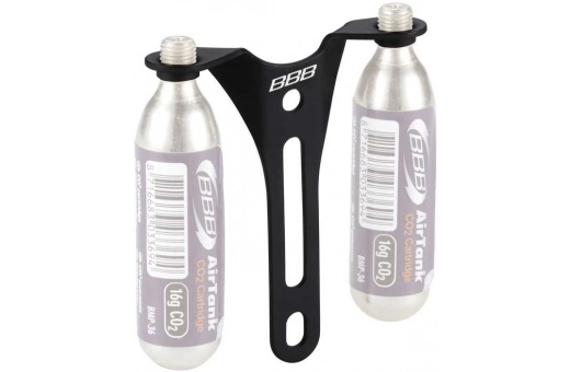 Hållare i aluminium som monteras bakom flaskstället. Två gängade hål som passar för kolsyre patroner för pumpning av däck. Vikt 11 gram. Patroner medföljer ej.