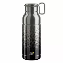 Populära Elite Mia Tour De France 650ml är en extremt tålig flaska i rostfritt stål som både är miljövänlig och ser till så att alla dina vätskor får en frisk och ren smak. Det här är ett av alla de nya projekt som Elit dragit igång för att göra tillverkningen av sina produkter mer långsiktigt hållbara för miljön. Den klassiska formen säkerställer ett stadigt grepp i flaskhållaren och ser samtidigt till att det är enkelt att greppa tag om flaskan när du behöver fylla på med vätska. Flaskan har en lätthanterlig skruvkork med stor öppning samt ett praktisk handtag för att säkerställa smidig transport när du inte använder cykelns flaskställ.