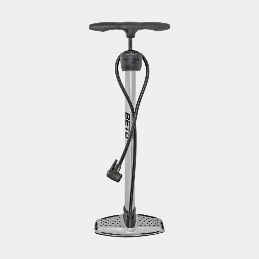 BETO 11/160 är en lyxig fotpump med både handtag och fotplatta i;non-slip; material som gör att du får maximalt grepp och gör pumpningen enklare. Pumpens dubbelhuvud passar alla ventiler (cykelventil, racerventil och racerventil). Genom den inbyggda tryckmätare (manometer) har du enkelt koll på att du får i rätt tryck i dina däck. Pumpen är till största del tillverkad av aluminium.