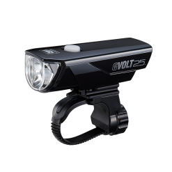 Kraftfulla Cateye GVOLT25 [HL-EL360G-RC] är uppladdningsbar framlampa med en ljusstyrka på 25 Lux som är StVZO-klassad. Det här är en kvalitativ lampa med en prestanda som ser till att du aldrig behöver oroa dig över att du inte ska synas i mörkret. Du fäster den enkelt på styrets ovansida, utan att du behöver använda några som helst verktyg. Totalt har den 2 olika ljuslägen och batteriet håller i upp till 6,5 timmar. Lampan är försedd med ett pålitligt batteri som du enkelt laddar upp via den medföljande MIcro USB-sladden (den totala uppladdningstiden ligger på runt 3 timmar).