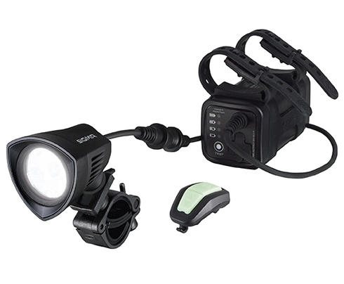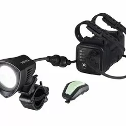 Tack vare en ljusstyrka på hela 2000 lumen är den potenta lampan Sigma Buster 2000 ett riktigt kraftpaket, som utan några större problem lyser upp ditt favoritspår. Lampan levereras tillsammans med ett rejält batteripaket och en ultralätt fjärrkontroll med praktiska glow-in-the-dark-knappar. Fjärrbetjäningen görs dessutom säkert, med bägge händer på styret.