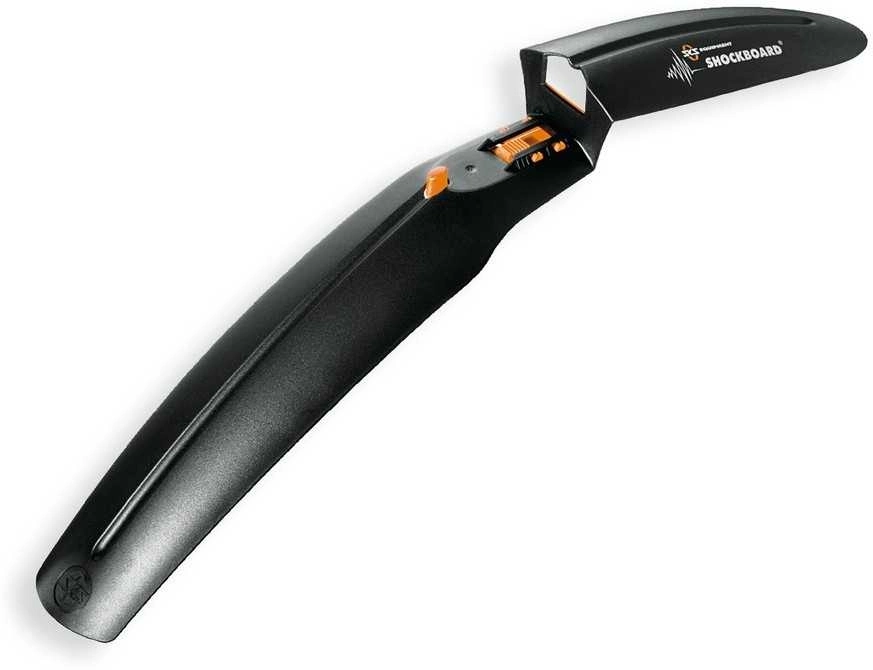 SKS SHOCKBOARD är en tålig och lätt snap-on framskärm med lite stealthy känsla som går att montera på de flesta typer av dämpade gafflar.