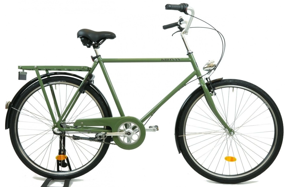 En cykel från svenska Kronan är utvecklad och byggd med samma känsla för slitstyrka och kvalitet som försvarets gamla trotjänare (m/42) som man ju fortfarande kan se rulla runt bland gator och torg. Men på dessa uppdaterade cyklar sitter du garanterat bekvämare och som en extra bonus fungerar de precis lika bra i hektisk stadstrafik som på avslappnade helgturer till Tofta skjutfält. Modellen har klassiskt raka linjer och om praktisk användarvänlighet, pålitlig driftsäkerhet och miljövänlig körglädje är av högsta prioritet, ja då har du hittat helt rätt modell.