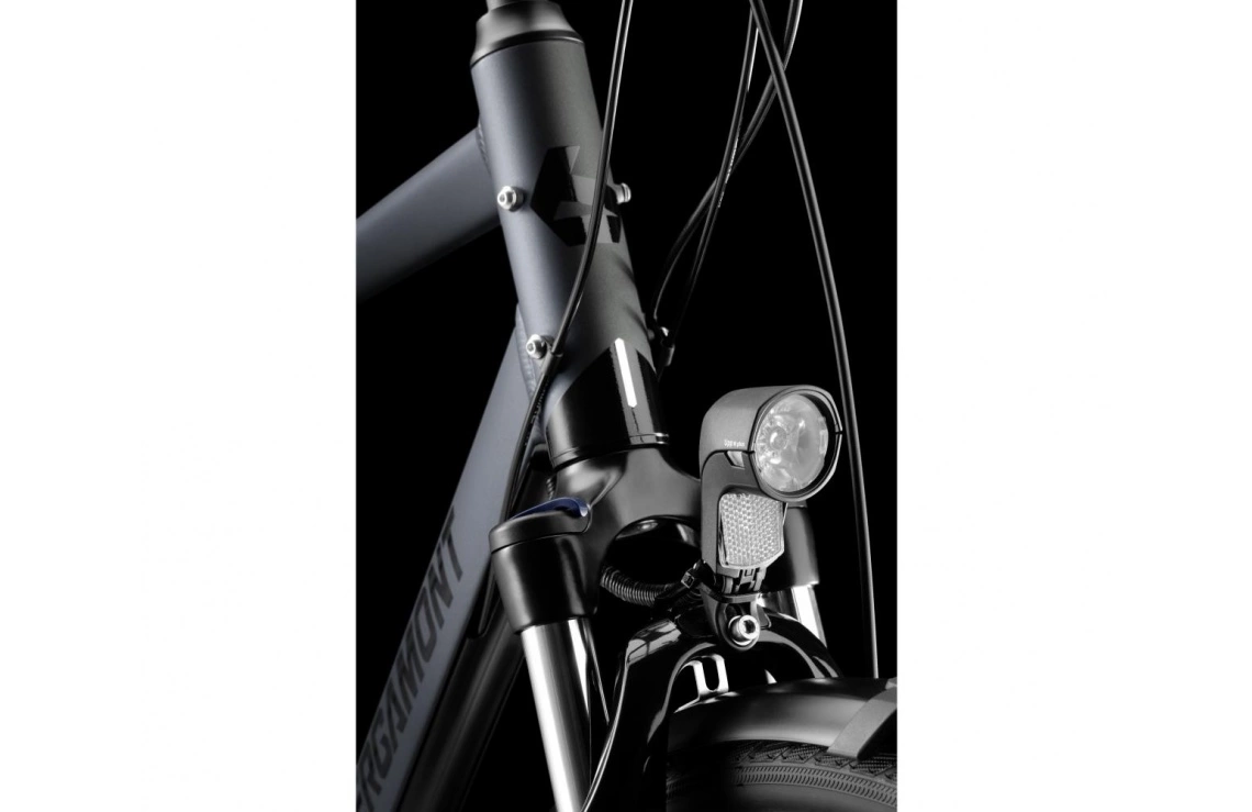En sportig och underbart bekväm stadscykel som tar sig fram överallt och som redan från start är försedd med både stänkskärmar, pakethållare, kedjeskydd och ett praktiskt stöd. För säkerhets skull har den även en kvalitativ LED-belysning från Busch + Müller som drivs av en pålitlig navgenerator men dessutom har en inbyggd kondensator (som fungerar lite som ett batteri) som ser till att du syns tydligt även när du står still med din cykel.