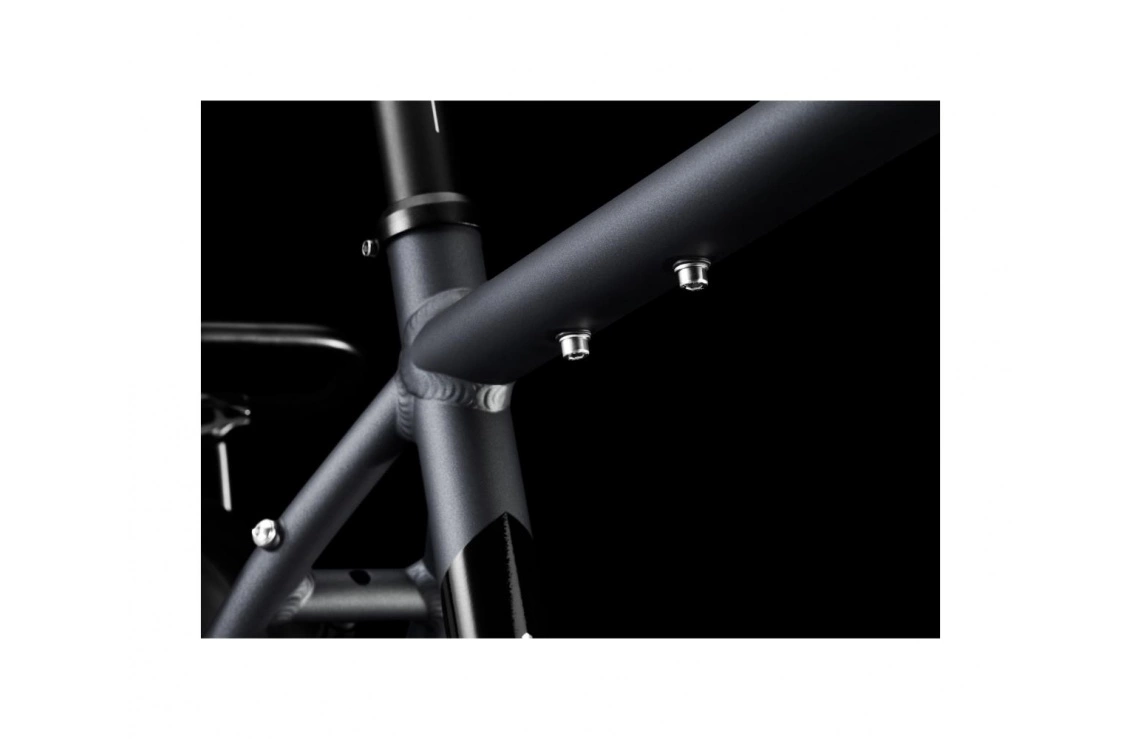 Under den eleganta lacken döljer sig en stabil aluminiumram som levererar kontrollerad cykling och en effektiv kraftöverföring. Ramens geometri, kombinerat med en praktiskt reglerbara styrstam, ger dig alla möjligheter att hitta en position som ser till att du får en nästan panoramaliknande vy över omgivningen. Och du greppar ett styre med en tydligt svängd form som ser till att dina händer alltid bibehåller ett naturligt avslappnat läge.