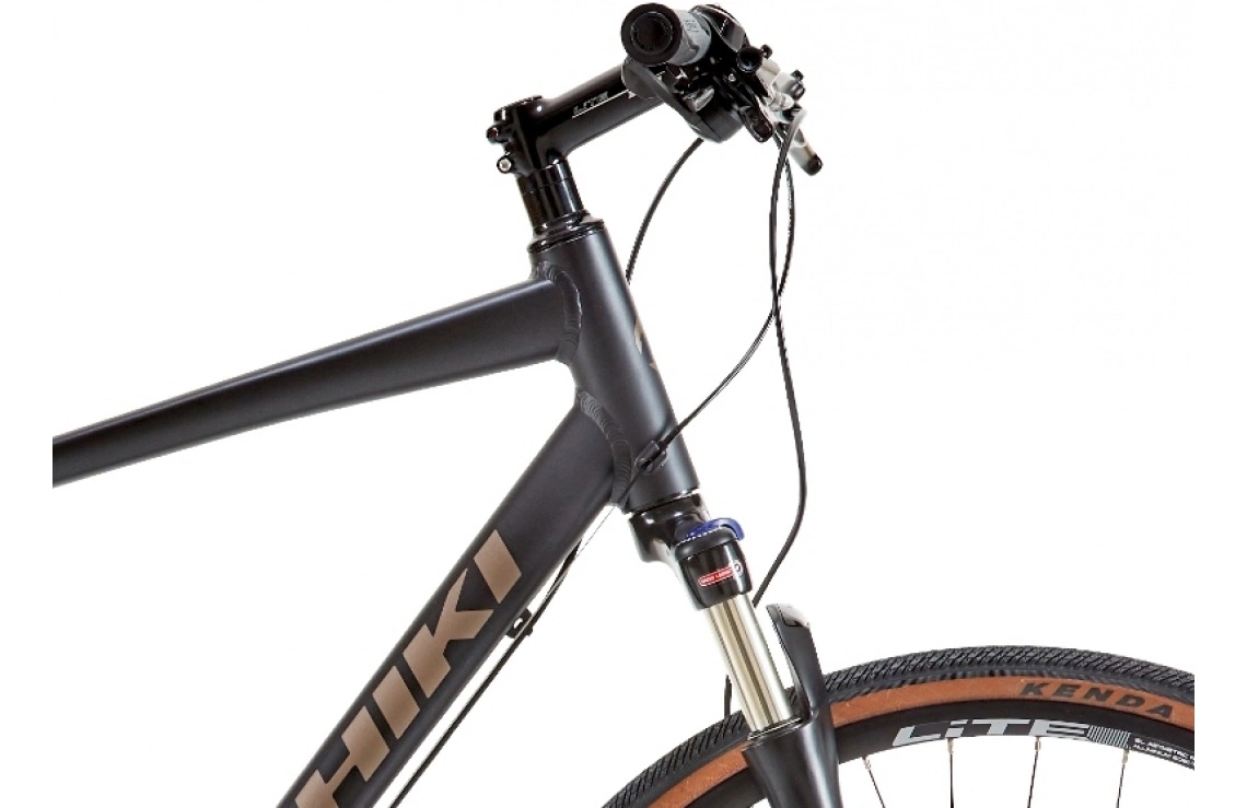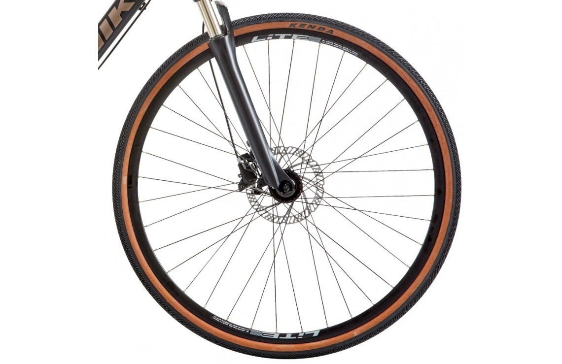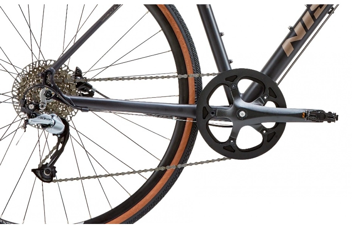 De tåliga hjulen med förstärkta ekrar har Nishiki´s egenutvecklade asymmetriska fälgar som gör hjulen starkare genom att jämna ut ekerspänningen mellan höger och vänster sida. På hjulen sitter ett par snabba gummin från Kenda med 37mm bredd och punkteringsskydd, vilket ser till att cykeln utan problem klarar småstökiga grusvägar. En cyklande zenbuddhist skulle nog kalla storleken för den ”gyllene medelvägen”… kör du med lite lägre lufttryck så höjer du komforten och uppnår bättre skydd mot vassa föremål och grus, allt för att du ska få så bekymmersfri cykling som möjligt (främst på lösare underlag). Håller du däcken väl pumpade så står de pall för det mesta och du får en fantastiskt lättrullande cykel (främst på hårdare underlag) som gör dig lika glad varje gång du trampar iväg från klungan.