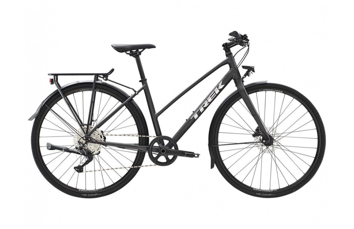 Det robusta hjulsetet består av dubbelbottnade aluminiumfälgar och greppsäkra gummin från Bontrager (H2 Comp) med robust punkteringsskydd som hanterar allt från slät asfalt till ojämna grusvägar. Dessa lite bredare (32 mm) däck ger dig den perfekta kombinationen av grepp, komfort och stabilitet, vilket i praktiken innebär ökad trygghet när terrängen börjar bli lite besvärligare. Den är rikligt utrustad och har både lampor, skärmar, stöd och pakethållare vilket både förenklar din vardag och ser till att du kan cykla i vilket väder som helst.