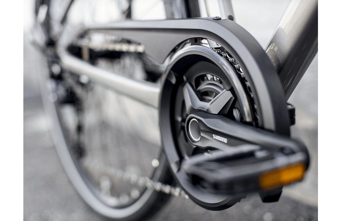 På ramen hittar du redan från start alla de tillbehören som förenklar din vardag. Eller vad sägs om en MIK-kompatibel bakre pakethållare i aluminium som klarar tunga laster, heltäckande skärmar samt en kraftfull främre och bakre belysning som ser till att du syns även när mörkret faller. Lägg därtill ett stadigt stöd, en ställbar styrstam, en dämpad framgaffel med integrerad belysning, en navdynamo, ergonomiska handtag, en dämpad sadelstolpe, en bekväm komfortsadel, ett roterande kedjeskydd samt ett ramlås och du har en given favorit!