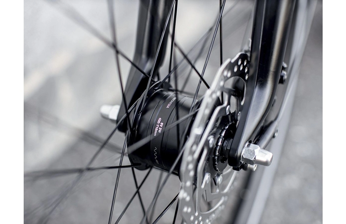 Det robusta hjulsetet består av aluminiumfälgar som försetts med gummin från Bontrager (H2 Comp) med ett mångsidigt däckmönster ger extra stabilitet och bra grepp som hanterar allt från slät asfalt samt knagglig kullersten. Treks bakgrund må vara fylld av sport och tävlingar, men bekvämligheten är ändå det som är högprioriterat för denna cykel. Dessa 40 mm breda däck ger en fin kombination av komfort, stabilitet och lågt rullmotstånd vilket i praktiken innebär ökad trygghet och skönare cykling på de underlag du normalt sett hittar i staden och alla dess närområden. Framtill hittar du dessutom en dämpad framgaffel från ForkLight (3.0) med integrerad belysning i form av en ljusstark 30 lux LED-lampa, det ger ytterligare säkerhet, komfort och tar effektivt hand om tröttsamma vibrationer och stötar från underlaget.