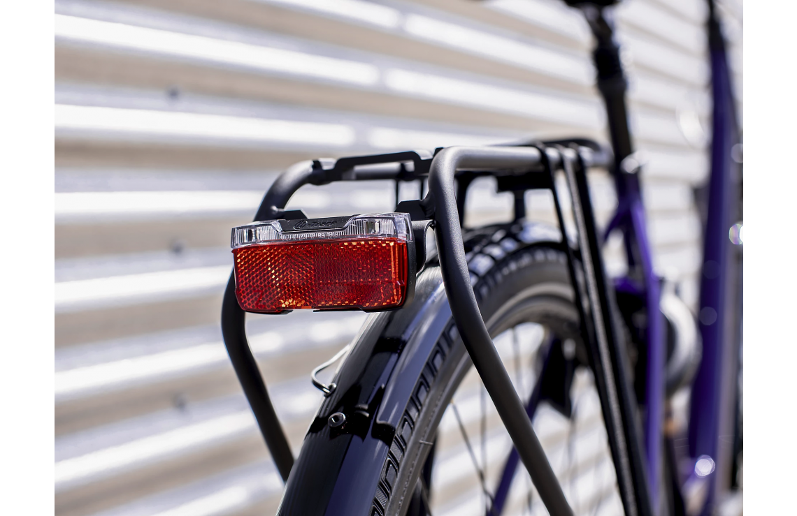 På ramen hittar du redan från start alla de tillbehören som förenklar din vardag. Eller vad sägs om en MIK-kompatibel bakre pakethållare i aluminium som klarar tunga laster, heltäckande skärmar samt en kraftfull främre och bakre belysning som ser till att du syns även när mörkret faller. Lägg därtill ett stadigt stöd, en ställbar styrstam, en dämpad framgaffel med integrerad belysning, en navdynamo, ergonomiska handtag, en dämpad sadelstolpe, en bekväm komfortsadel, ett roterande kedjeskydd samt ett ramlås och du har en given favorit!