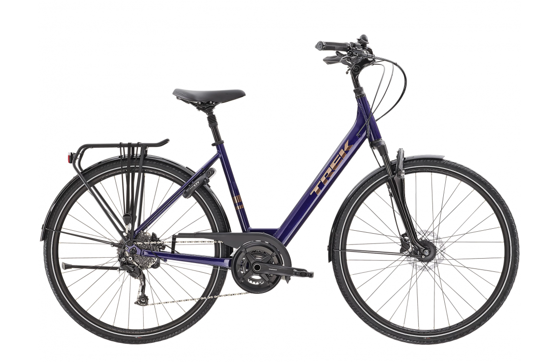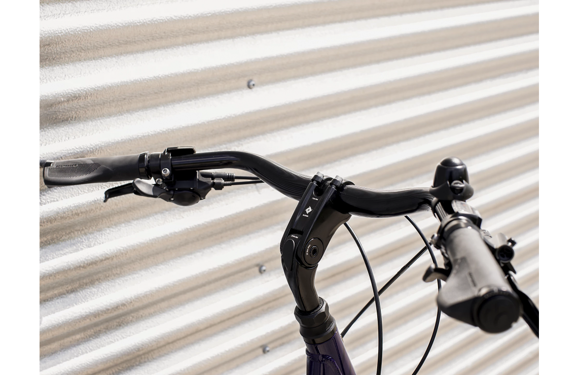 Det robusta hjulsetet består av aluminiumfälgar som försetts med gummin från Bontrager (H2 Comp) med ett mångsidigt däckmönster ger extra stabilitet och bra grepp som hanterar allt från slät asfalt samt knagglig kullersten. Treks bakgrund må vara fylld av sport och tävlingar, men bekvämligheten är ändå det som är högprioriterat för denna cykel. Dessa 40 mm breda däck ger en fin kombination av komfort, stabilitet och lågt rullmotstånd vilket i praktiken innebär ökad trygghet och skönare cykling på de underlag du normalt sett hittar i staden och alla dess närområden. Framtill hittar du dessutom en dämpad framgaffel från ForkLight (3.0) med integrerad belysning i form av en ljusstark 30 lux LED-lampa, det ger ytterligare säkerhet, komfort och tar effektivt hand om tröttsamma vibrationer och stötar från underlaget.