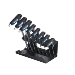 Insexnycklarna PRO T-Handle Hex Wrench Set – 2/2.5/3/4/5/6/8/10mm innehåller en uppsättningen med åtta T-formade insexnycklar i storlek 2-, 2,5-, 3-, 4-, 5-, 6-, 8- och 10 mm i stål för precisionsjusteringar. Alla insexnycklar har en anodiserad stålkonstruktion och ett förvaringsställ i stål, som också är väggmonterbart.