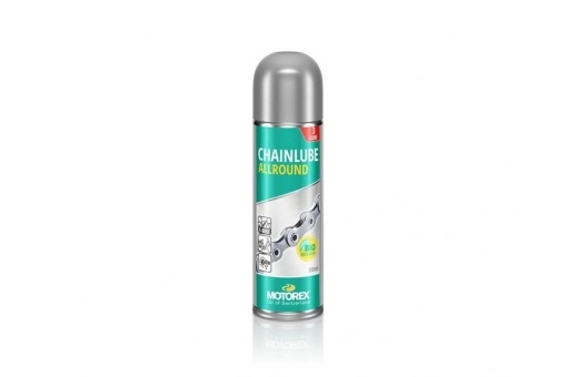 Kedjeoljan Motorex Chaninlube Allround 300 ml är ett universellt smörjmedel för kedjan, speciellt designat för kraven från daglig användning. Skyddar både kedja och andra växelkomponeneter mot korrosion och det minskar även det generella slitaget. Utvecklad för kontinuerlig användning på grund av den långvariga effekten och även perfekt att använda för elcyklar och annat som drivs med kedja. Applicera oljan på den torra kedjan och växelkomponenterna. Rör på delarna medan du gör detta för att smörjmedlet skall appliceras jämnt över hela drivlinan och kedjan.
