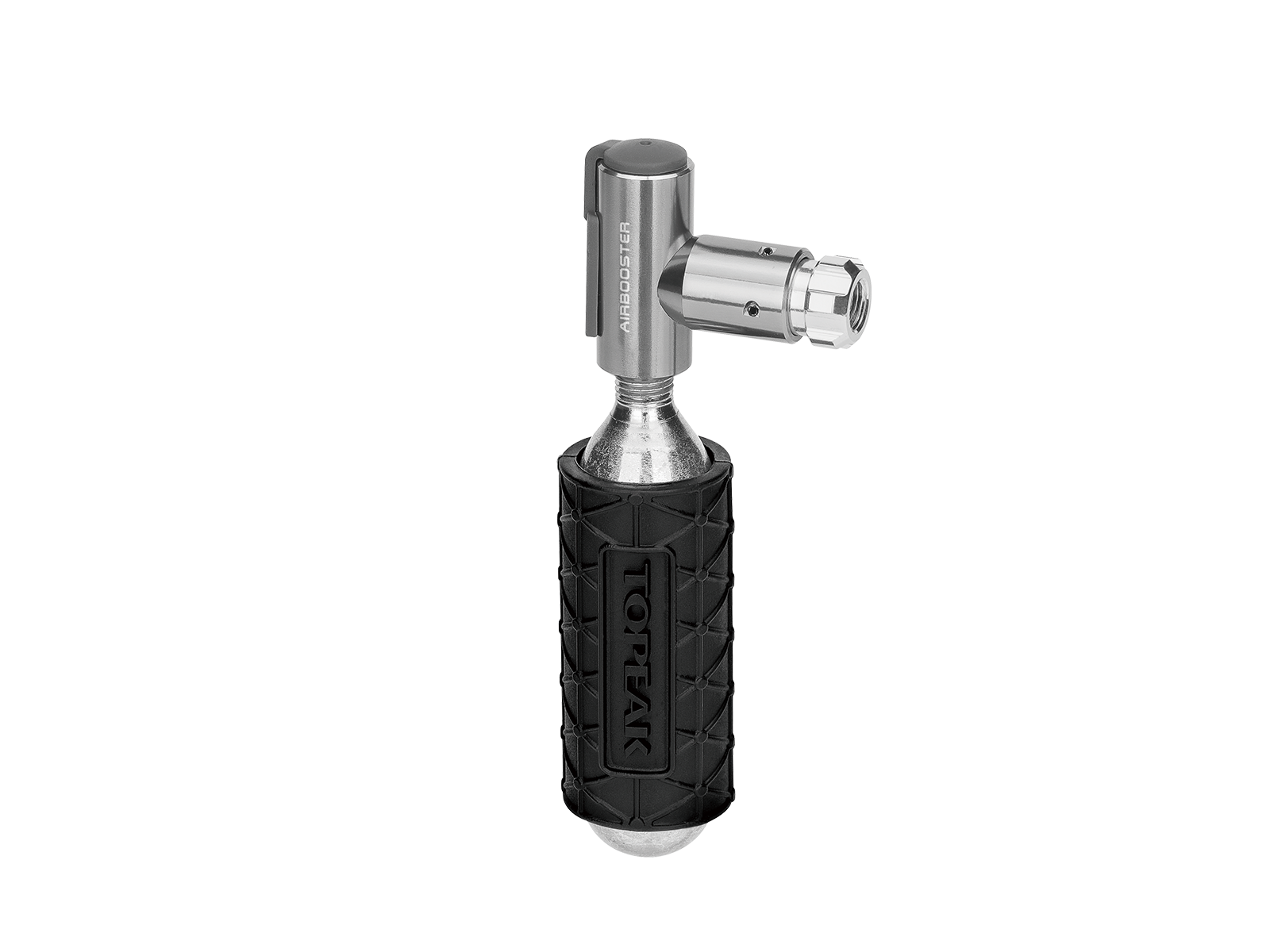 Topeak AirBooster 16 Gär en otroligt liten, lätt och lättanvänd CO2-inflator med dubbelsidig design som är tillverkad i solid CNC-fräst aluminium och har ett vinklat ventilhuvud som passar både Schrader-och Presta-ventiler. Dess smarta utformning tillåter dig som användare att justera flödet medan däcket fylls. Den medföljande CO2-patronen har ett fodral i silikon som skyddar händerna från att kylas ned under uppblåsning.