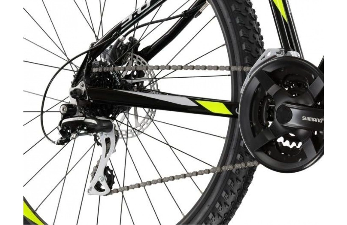 Stommen utgörs av en robust ram i aluminium med bekväm körställning och bra uppsikt på det som händer i omgivningarna. Den här hojen är gjorda för att används flitigt, ofta och på en mängd olika sätt – Att cykla till och från jobbet, till skolan, till träningen, på skogsstigar, på bakhjulet eller bara ner till glasskiosken är precis vad den är gjord för. Under motorhuven sitter en pålitlig 24-växlad drivlina från Shimano (Tourney/Acera) med lättmanövrerade och tydliga reglage som tack vare sitt breda register ser till att du enkelt tar dig uppför tuffa uppförsbackar utan några större problem.