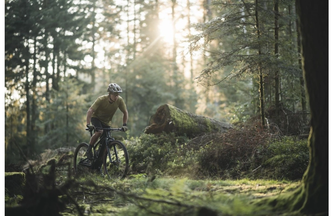 Utan att bli det minsta stöddig lutar sig denna rappa skogsmaskin självsäkert mot en främre triangel i högkvalitativ kolfiber (HMF) i kombination med ett singlepivot länkage med swingarm i aluminium (6011) som väger in på låga 2.650 gram inklusive dämparen. Den unika konstruktionen med en kraftfull undre stomme (stiffness zone) där fokus ligger på styrka och vridstyvhet i kombination med en övre stomme (lightweight zone) där fokus ligger på att minimera vikten utan att riskera stommens strukturell styrka har redan visat sig vara ett vägvinnande koncept. Och det kanske inte är så konstigt när den här helt nya stommen har hämtat inspiration från en föregångare med en geometri som plockat hem flera VM- och OS-medaljer än någon annan XC-cykel i världshistorien.