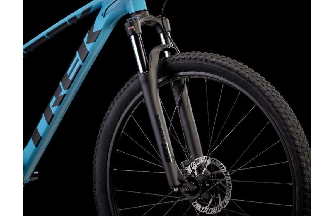 Det slitstarka hjulsetet från Bontrager består av robusta aluminiumfälgar och mångsidiga kvalitetsgummin från Bontrager (XR2 Comp) som kan hanterar allt från slät asfalt till riktigt stökig skogsterräng. Hjulstorlek (27,5″-hjul) är dessutom anpassad efter ramens storlek vilket ger dig en väl avvägd balans mellan hastighet, manöverförmåga och kontroll.