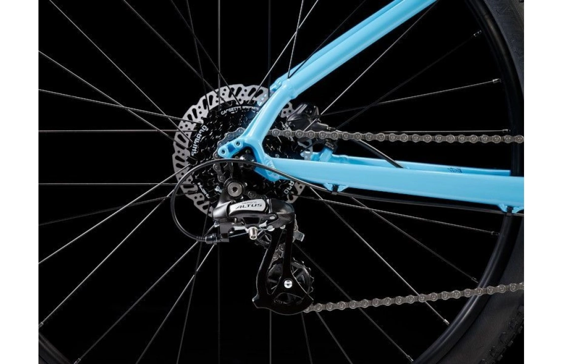 Den beprövade drivlinan är hämtad från kvalitetssäkra Shimano (Altus) och dess 16 växlar ger dig ett växelomfång som ser till att du kan hålla ett jämnt tempo oavsett vilken lutning eller terräng som gäller för stunden. Inbromsningen handläggs av effektiva hydrauliska skivbromsar från Tektro vilket ser till att du har kraftfull bromsverkan oavsett om det är lerigt, regnigt eller slaskigt underlag som gäller för dagen.