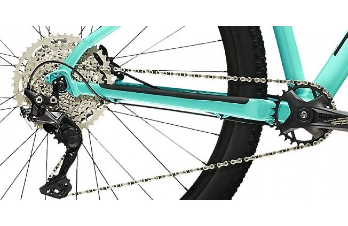 - 1x-drivlina från Shimano (Deore) med ett enda växelreglage men ändå med en imponerande bred utväxling