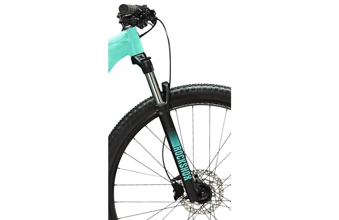 Framtill sitter en dämpad gaffel från RockShox (Judy) med ställbar spiralfjädring och 100 mm slaglängd som dessutom är utrustad med Lockout. Det innebär att du kan spärra gaffeln och därmed åstadkomma högre pedaleffektivitet, vilket är perfekt på släta avsnitt där effektiviteten kanske är viktigare än stötdämpningen.