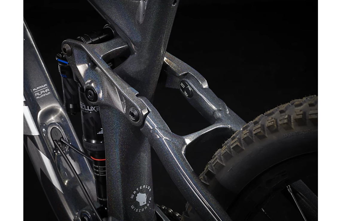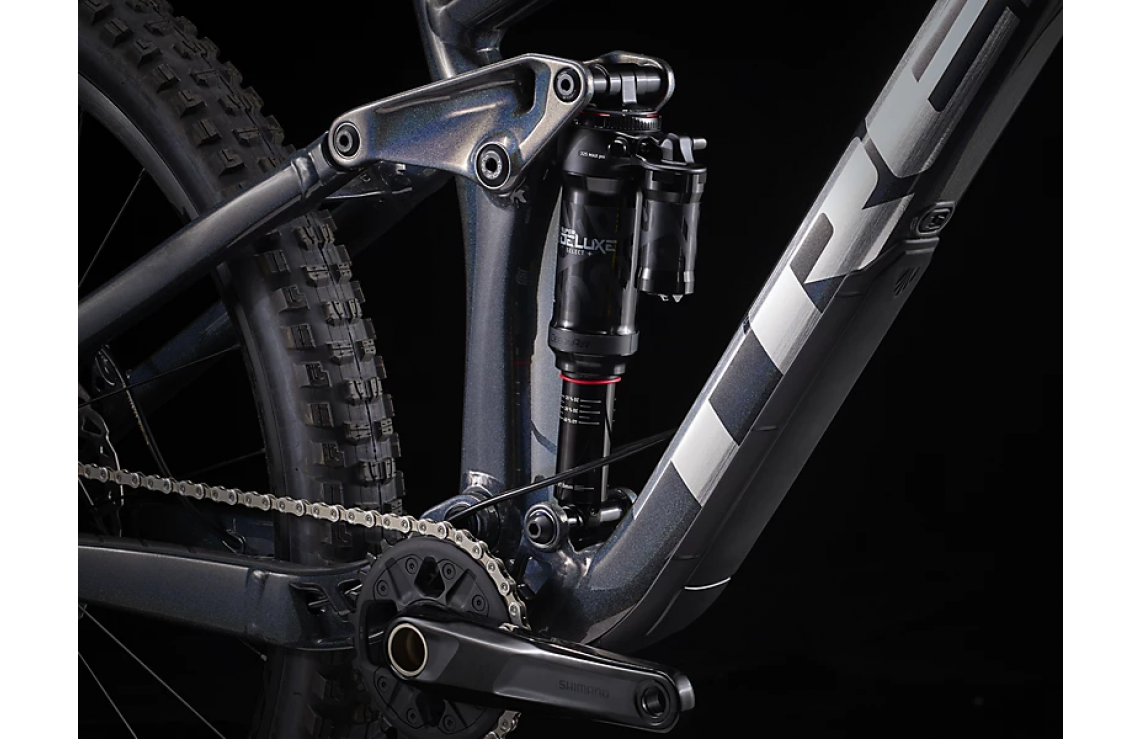 Framtill sitter en luftgaffel från RockShox (Lyrik Select+) med en slaglängd på 160 mm och även baktill sitter en dämpare från RockShox (Super Deluxe Select+) med en slaglängd på 150 mm. Denna bekväm luftfjädring och Charger 2.1 RC-dämpare som ger dig större inställningsmöjligheter och ökad kontroll i branterna. Tack vare Trek´s unika Active Braking Pivot har konstruktörerna lyckats styra hur dämpningen ska reagera på de krafter som skapas vid acceleration och inbromsning, dessutom helt oberoende av varandra. I praktiken kan du nyttja dämparen fullt ut även vid inbromsning och du får därmed större kontroll när du behöver det som mest. Lägg därtill en praktiskt reglerbar sadelstolpe som ser till att du blixtsnabbt kan sänka/höja sadeln i farten.