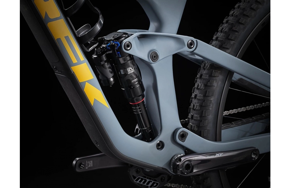 Framtill sitter en luftgaffel från RockShox (ZEB Select+) med en slaglängd på 170 mm och även baktill sitter en dämpare från RockShox (Super Deluxe Ultimate) med en slaglängd på 160 mm. Dämparna kan optimeras efter både vikt samt körstil och luftfjädringen har exklusiva Thru Shaft som ger dig ett fantastiskt grepp, mjuk kontroll och allt den stabilitet som du behöver för att kasta dig utför de brantaste backarna dagarna i ända. Tack vare den smarta lågkompressionsinställningen kan man dessutom eliminera cyklistens inverkan utan att behöva påverka den kompressionen som så väl behövs vid höga hastigheter på de lite mer brutala skogsstigarna. Tack vare Trek´s unika Active Braking Pivot har konstruktörerna lyckats styra hur dämpningen ska reagera på de krafter som skapas vid acceleration och inbromsning, dessutom helt oberoende av varandra. I praktiken kan du nyttja dämparen fullt ut även vid inbromsning och du får därmed större kontroll när du behöver det som mest. Lägg därtill en praktiskt ställbar sadelstolpe (med upp till 170 mm slaglängd) från Bontrager (Line Elite Dropper) som ser till att du blixtsnabbt kan sänka/höja sadeln i farten.