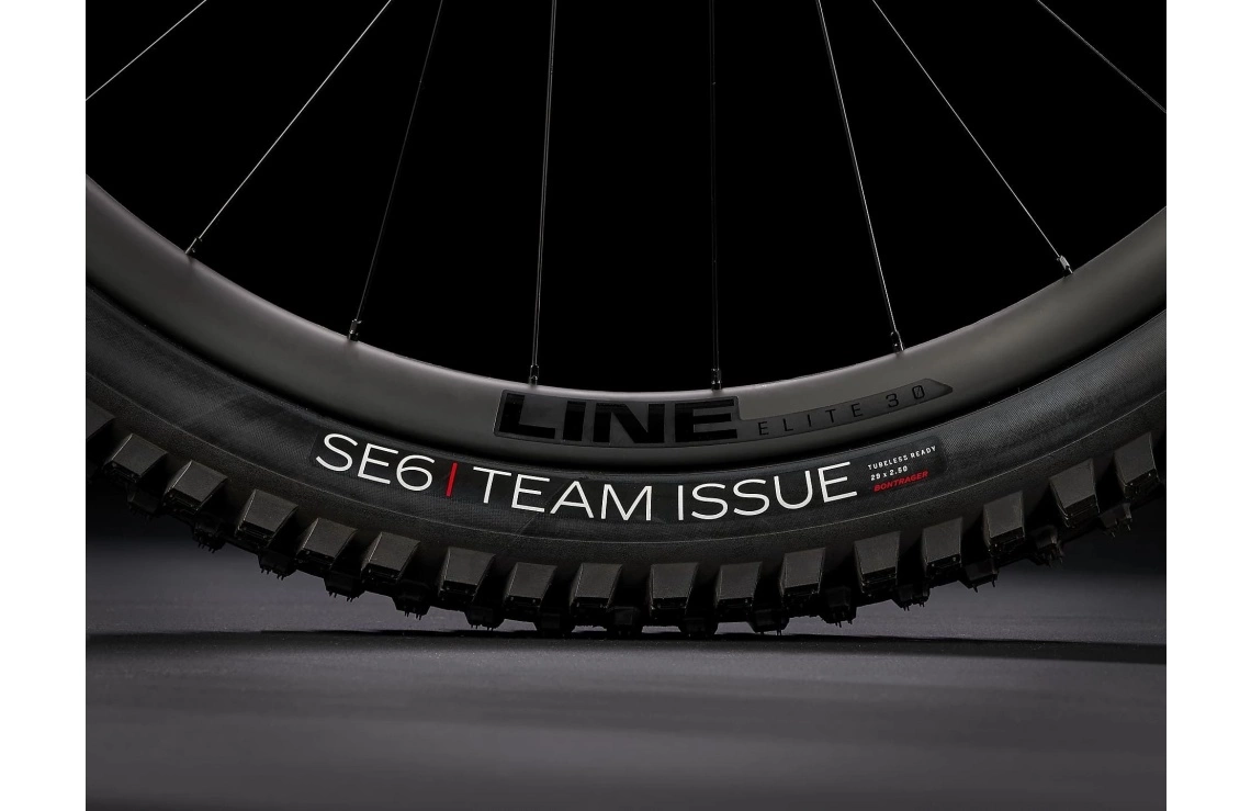 Allt rullar på ett mästerligt hjulset som består av högklassiga TLR-fälgar i kolfiber från Bontrager (Line Elite 30) som rullar på tävlingsklara gummin från Bontrager (SE6/SE5 Team Issue) med 2,5″ bredd som är klart för drabbning och som briljerar på allt från grusvägar till lös lervälling. Breda hjulfästen (110mm fram, 148mm bak) ger dig hjul som är lika styva som ett par 27.5-tummare, men med alla fördelar som ett större däck besitter. Med Boost148 kan du dessutom använda bredare däck och en större kedjekrans utan att påverka q-faktorn eller pedaleffektiviteten. Rapid Drive nav med 108 ingreppspunkter för snabb acceleration och en trygg känsla även när man trampar sig fram på det mest krävande underlaget. Du får jämnt gående och direkt kraft när du behöver kasta dig ur kurvorna och den extra pedalspärren ger ökad kontroll och kan vara hela skillnaden vid knepiga klättringar.