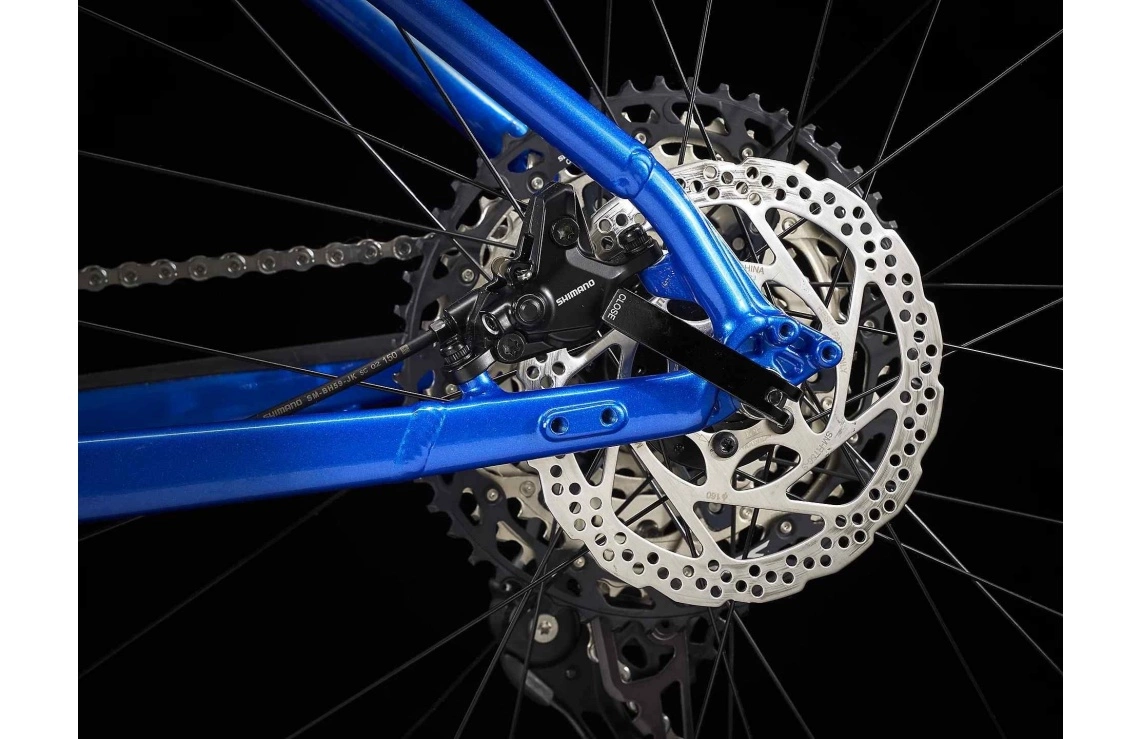 Hjulstorlek är anpassad efter ramens storlek (29″-hjul på större ramar och 27,5″-hjul på mindre) vilket ger dig den perfekta kombinationen av hög hastighet, kvick manöverförmåga och maximal kontroll. Det slitstarka hjulsetet från Bontrager består av lätta aluminiumfälgar (Kovee TLR) och de är bestyckade med ett par mångsidiga kvalitetsgummin från Maxxis (Ardent Race) som briljerar på allt från hårdpackad singletrack till lös lervälling.