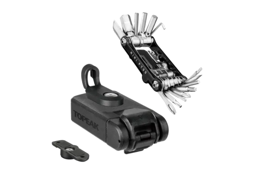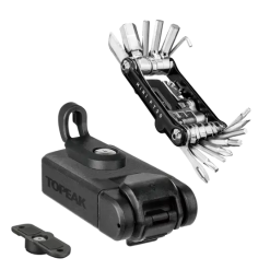 Smarta Topeak Ninja Master+ ToolBox PT30 monteras under Ninja Master+ seriens flaskhållare med medföljande fästet eller så använder du den med det medföljande ramfästet. Ger dig alternativa sätt att bära med dig en väderbeständig verktygslåda som innehåller 30 olika funktioner för att kunna utföra reparationer och underhåll när du är ute och cyklar