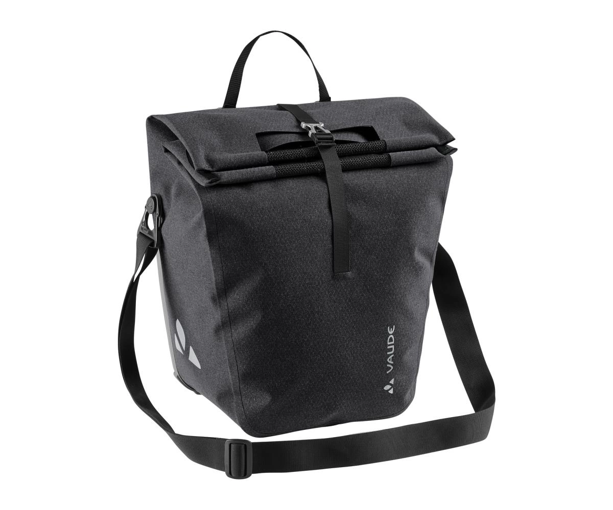 Den högklassiga cykelväskan Vaude ReCycle Back Single är tillverkad i ett imponerande slitstarkt och helt återvunnet material som utan problem står emot vatten och dåligt väder. Rymlig sidoväska för både kvalitets- och miljömedvetna cyklister som riskfritt vill kunna transportera sina tillhörigheter i alla typer av klimat och väderförhållanden, oavsett om det gäller daglig pendling till jobbet eller det stora semesteräventyret över okända kontinenter.