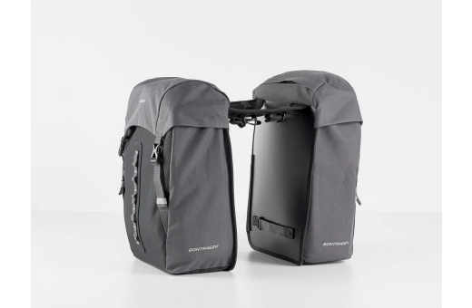Sidoväskorna Bontrager Town Double Pannier är så smidiga och lättpackade att du kan göra mer, och få med dig mer, per cykel. Med sin flexibla bryggdesign passar den här dubbelväskan på så gott som alla pakethållare där kardborreband kan användas för monteringen. Ytterfickor och fackindelning håller packningen sorterad och i säkert förvar. Ett dragsnöre håller sakerna tryggt på plats under turen och kan enkelt justeras efter din packning.
