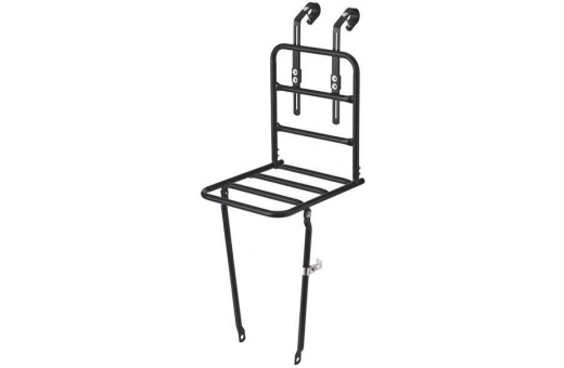 Pakethållare Basil är en frampakethållare i robust utförande som monteras med stag på framaxeln och två krokar som hängs på styret (justerbara för 21-31,8 mm Ø). Universalfäste för belysning. Passar på 26 – 28” cyklar. Maxlast 10 kg.