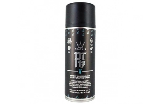 Our highly versatile, readily biodegradable and PTFE-Free maintenance spray displaces moisture from freshly washed steeds, leaving light lubrication and a long-lasting thin film anti-corrosive coating on chainsets and other moving metal parts. A deep penetrator, PT17 will also act as a freeing agent to release corroded and seized parts. Use on paintwork to reduce mud cling, reduce weight on your winning loamy race run and reduce cleanup time after your next ride – less time cleaning, more time riding! Safe for use on all metal parts, paintwork, rubber, plastic and carbon. Please always test on an inconspicuous area before use.