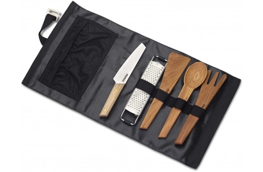 Praktiska Primus Campfire Prep Set är matlagningens ”Mise en place” för oss som gillar att laga mat utomhus. En matlagningssats med insida i PU-behandlad Polyamid och utsida i G1000 och allt du behöver för att laga en fantastisk måltid i det fria. Satsen har en ficka för extra tillbehör och du kan antingen rulla ut den på en plan yta eller hänga upp den. När matlagningen är klar stoppar du tillbaka de använda redskapen i fodralet, rullar ihop det och tar hand om det när du kommer hem. Kort sagt – ordning och reda och allt på rätt plats!